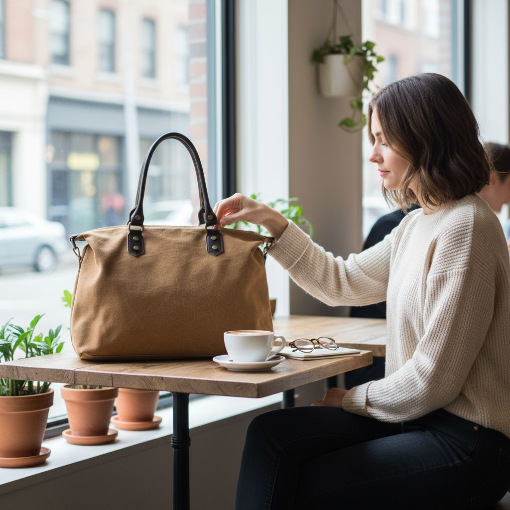 Realizado en piel de alta calidad y loneta, el cierre del bolso es de cremallera, tiene dos asas cortas y otra regulable a empalme para hacerla bandolera, contiene cremallera interior. Un diseño sencillo con mucho carácter y que puedes personalizar a tu gusto con sus iniciales y con una banda étnica (no incluida en el precio).